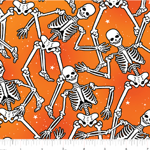 Skeleton Crew Orange Halloween Spirit 45" Wide Sold by The Yard 100% Cotton
