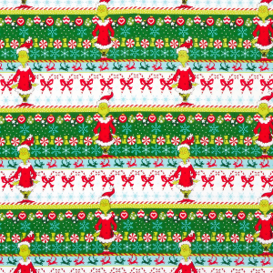 Dr. Seuss How the Grinch Stole Christmas White Border Stripe Fabric