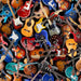 Cotton Music Guitars Instruments Colorful Musicians Black Cotton Fabric Print by The Yard (MUSIC-CD3359-BLACK) by Timeless Treasures