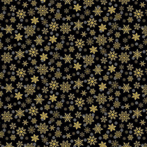 45" Wide Timeless Treasures Holiday Black Metallic Snowflakes (CM3627)