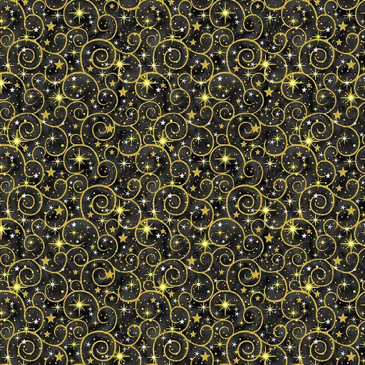 45" Wide Timeless Treasures Holiday Black Metallic Swirls (CM3626)