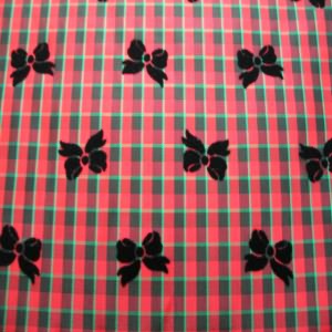 60" Taffeta Plaid Red and Green Check with Black Velvet Bows